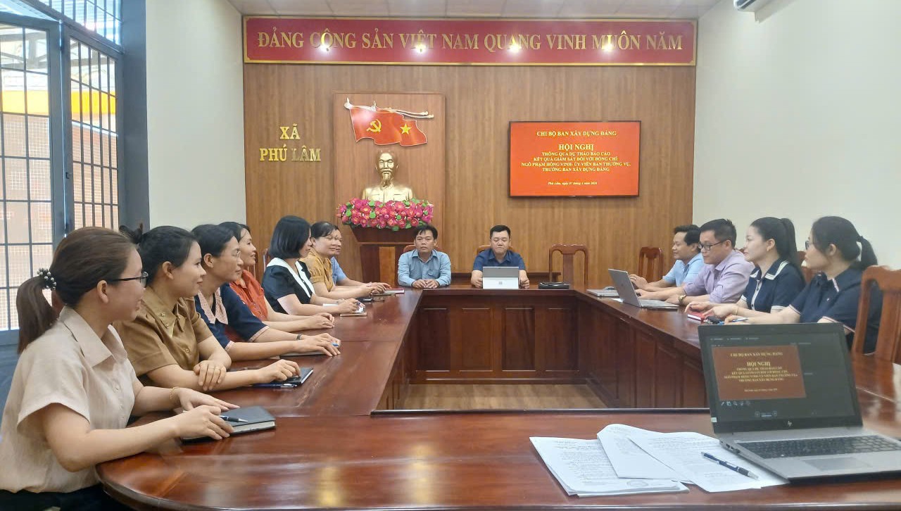 Quang cảnh hội nghị Ủy ban Kiểm tra Đảng ủy xã Phú Lâm giám sát đảng viên trong việc kê khai tài sản, thu nhập năm 2025