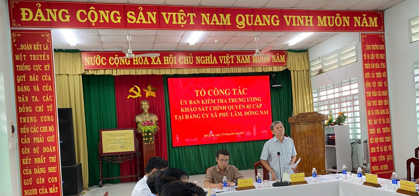 Ngày 22/08/2025, Tổ công tác theo Quyết định số 2029-QĐ/UBKTTW ngày 12/8/2025 của Ủy ban Kiểm tra Trung ương do đồng chí Nguyễn Văn Hội – Ủy viên Ủy ban Kiểm tra Trung ương làm Tổ trưởng đã có buổi khảo sát tại xã Phú Lâm, Đồng Nai về tình hình triển khai mô hình chính quyền địa phương 2 cấp gắn với chuyển đổi số trong quản lý, điều hành.